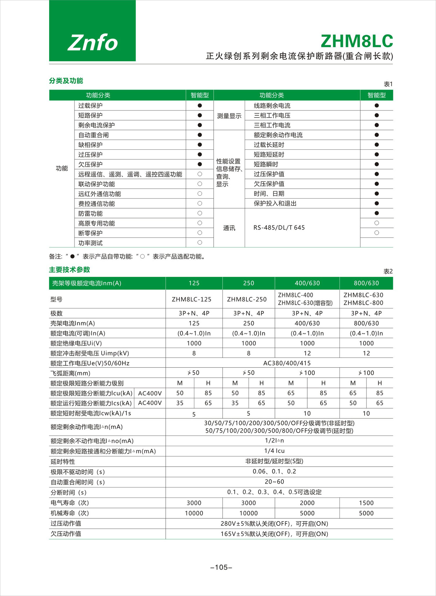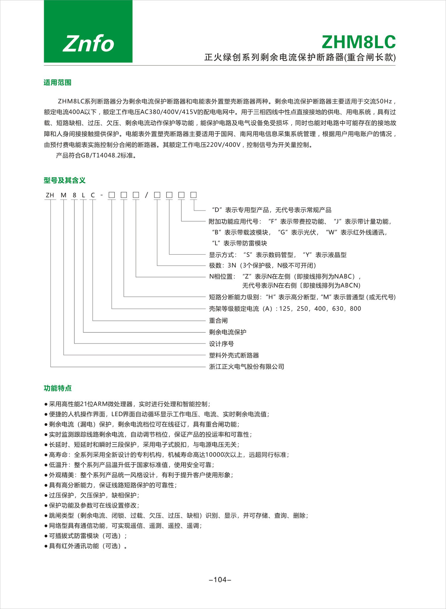 ZHM8LC系列剩余电流保护断路器(重合闸长款)产品说明书
